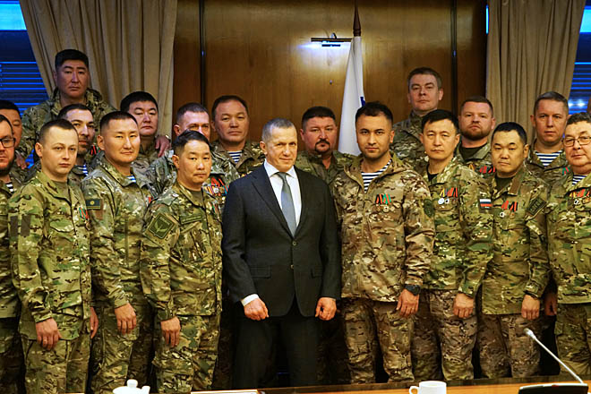 Заместитель председателя Правительства РФ – полномочный представитель Президента РФ в ДФО Юрий Трутнев провёл встречу с отрядом добровольцев государственных гражданских служащих, вернувшихся из зоны специальной военной операции в связи с окончанием контракта.