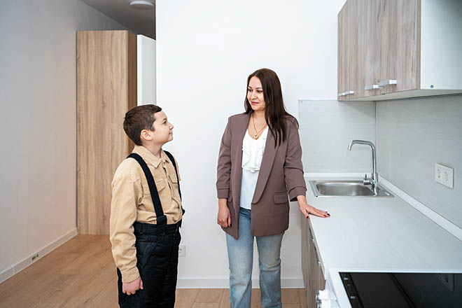 Врач лабораторной диагностики окружной больницы Эльвира Максимова и её сын Радмир оценили, в каких комфортных условиях им теперь предстоит жить. ФОТО: ЗЕМФИРА АЗАМАТОВА