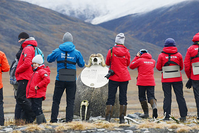Программа первого дня превзошла все ожидания. А во второй день туристическая группа направилась к восточной оконечности острова Врангеля в район мыса Уэринг, где осмотрела памятный знак Канадской арктической экспедиции 1913 – 1916 годов (его называют по имени флагманского судна знаком «Карлука»), а также кордон заповедника. Кульминацией этого дня стал круиз вдоль птичьего базара – редкое сочетание природных явлений подарило незабываемое зрелище. Туристы одновременно наблюдали колонии морских птиц, кормящегося прямо под скалами кита и нескольких медведей.