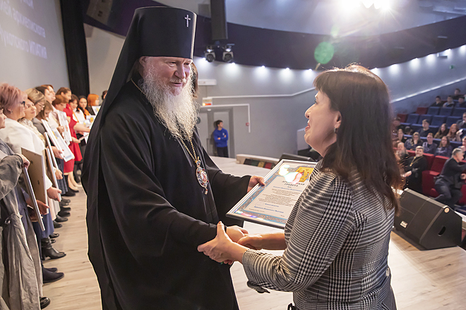 – Надо понимать, что нравственное воспитание неразрывно связано с духовным, – продолжил управляющий епархией. – Это особенно важно сегодня, когда в мире усиливается борьба добра и зла, ненависть к нашей стране, всегда стоявшей на стороне добра и справедливости, когда идёт искажение нашей истории, пересмотр итогов Второй мировой войны, в сознание нашей молодёжи насаждаются чуждые нам, ложные ценности, брошен вызов семейным устоям. Поэтому все мы призваны взращивать духовное древо нашего народа, объединив усилия пастырей, педагогов, учёных, родителей, чтобы дать молодому поколению надёжный фундамент, на котором должна строиться жизнь в твёрдой вере и богатая добрыми делами.