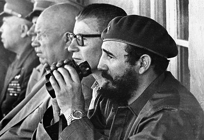 Во время учений Фиделю Кастро показывали манёвры различных родов войск. В том числе были и учения химических войск, проходившие в зоне условного химического заражения местности. Помню, как на встрече с личным составом команданте внимательно рассматривал средства, снаряжение противохимической защиты, после чего захотел примерить всё это на себя. В итоге – получилось, хотя наши солдаты сперва не могли найти комплект по его телосложению и чуть ли не двухметровому росту. Выручил старший лейтенант Забелый – командир батареи, который уступил кубинцу свой комплект. Присутствовавший здесь же Хрущёв, который был человеком не без чувства юмора, тогда предложил Фиделю проехать на Красную площадь и прогуляться по ней в этом наряде. Все дружно, включая кубинца, рассмеялись…